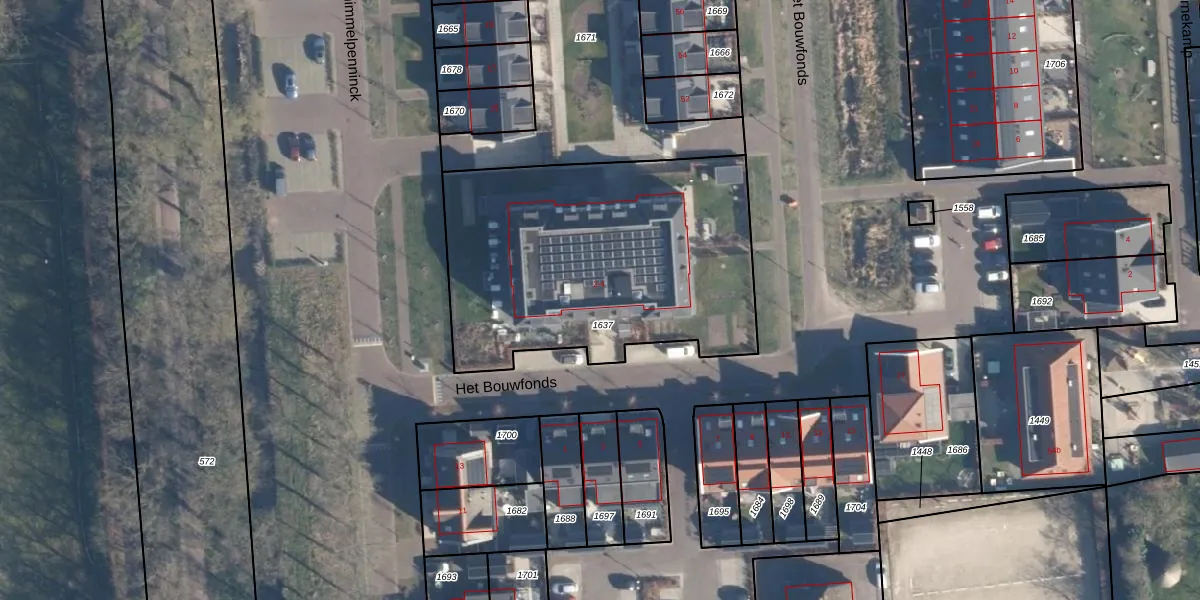 Het perceel waarop Het Bouwfonds 4 staat heeft een oppervlakte van 1620 m². Dit is een zeer groot perceel. De perceeloppervlakte wordt geregistreerd door het Kadaster. Gedetailleerde informatie over de maten van dit perceel kunt u vinden in het rapport Kadastrale kaart met maatvoering van Het Bouwfonds 4.