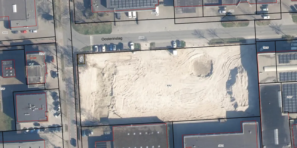 Het adres is gelegen op perceel 3052 in de sectie B en de kadastrale gemeente Hoevelaken. De kadastrale aanduiding is aldus HVL00-B-3052. Het perceel is met 6081 m² relatief groot. Het gemiddelde ligt in de kadastrale gemeente Hoevelaken op 1356,39 m². De grootste perceeloppervlakte in de kadastrale gemeente is 16,6 ha. De kleinste oppervlakte bedraagt 0 m². Op het perceel liggen in totaal 36 adressen. De huidige grenzen van het perceel zijn digitaal in de Basisregistratie Kadaster (BRK) geregistreerd op 19-02-2025.