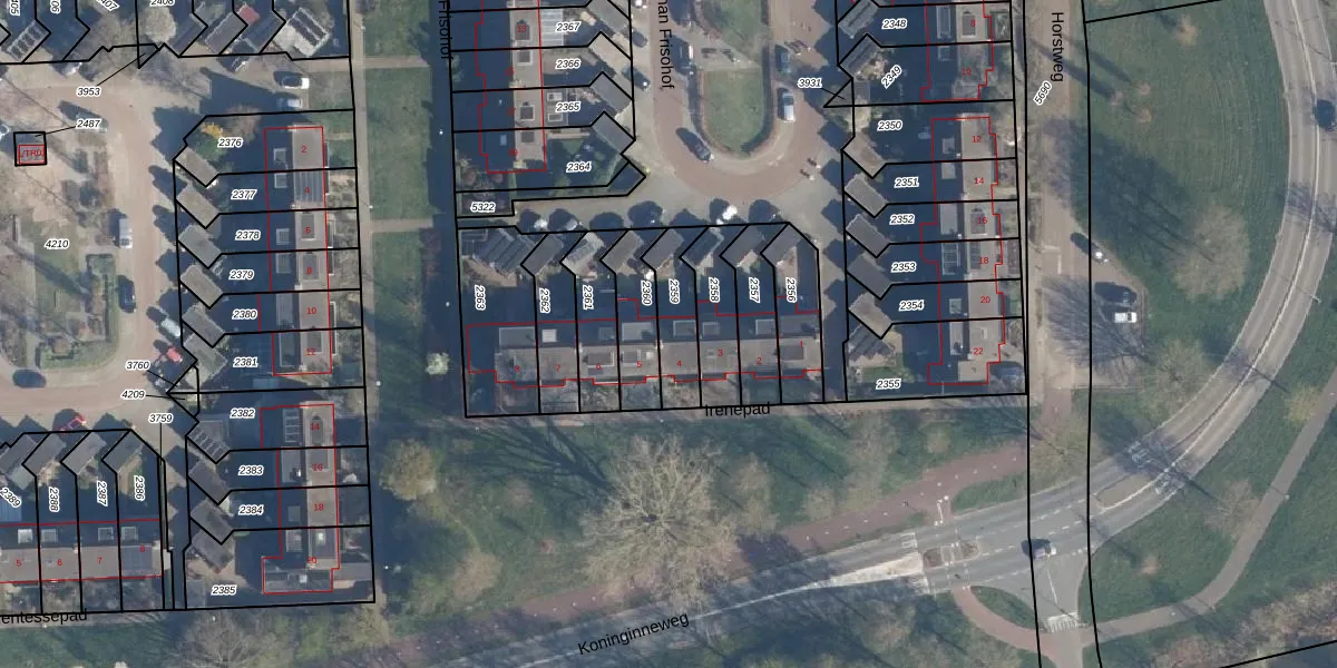 Gebruik de zoekbalk of klik op een perceel voor informatie over de adressen binnen dit perceel.
