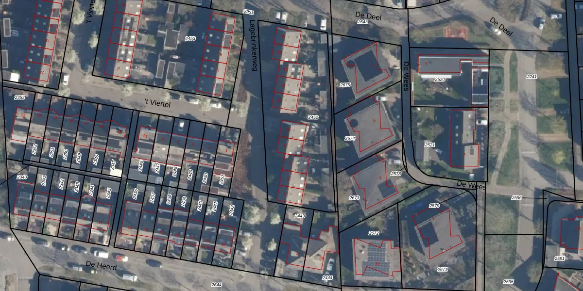 Lagebrinkerweg 8 is gelegen op kadastraal perceel HVL00B2452. Deze kadastrale aanduiding is uniek en wordt gebruikt door het Kadaster om eigendomsrechten en andere zakelijke rechten vast te leggen. Het perceel maakt onderdeel uit van de kadastrale gemeente Hoevelaken.