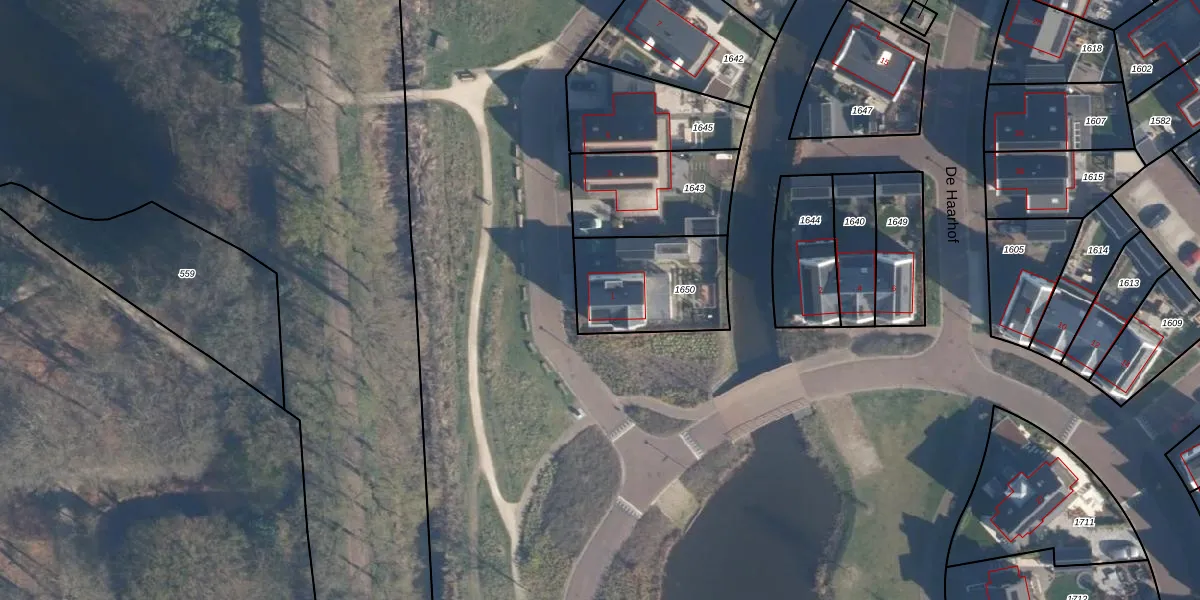 Het adres is gelegen op perceel 1650 in de sectie A en de kadastrale gemeente Hoevelaken. De kadastrale aanduiding is aldus HVL00-A-1650. Het perceel is kleiner dan gemiddeld in Hoevelaken. Het perceel is 402 m² groot, terwijl het gemiddelde ligt op 1356,39 m². De grootste perceeloppervlakte in de kadastrale gemeente is 16,6 ha. De kleinste oppervlakte bedraagt 0 m². Dit is het enige adres dat aanwezig is op het perceel. In de Basisregistratie Kadaster (BRK) werden de grenzen van het perceel geregistreerd op 19-09-2022.