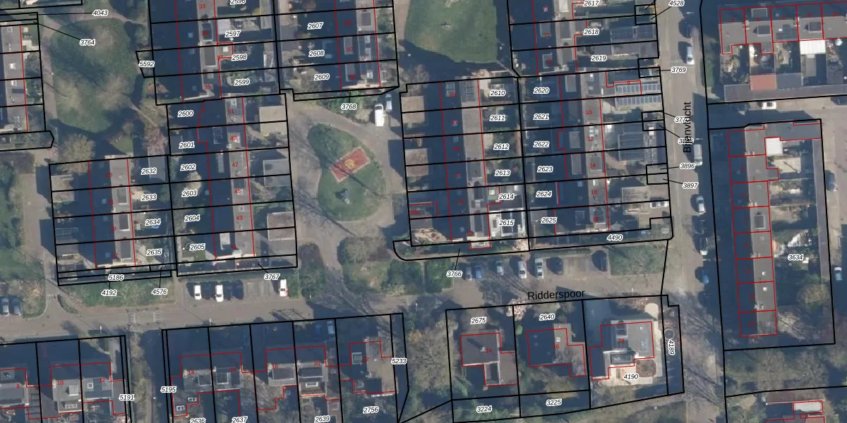 Het perceel waarop Ridderspoor 55-a staat heeft een oppervlakte van 179 m². Dit is een middelgroot perceel. De perceeloppervlakte wordt geregistreerd door het Kadaster. Gedetailleerde informatie over de maten van dit perceel kunt u vinden in het rapport Kadastrale kaart met maatvoering van Ridderspoor 55-a.