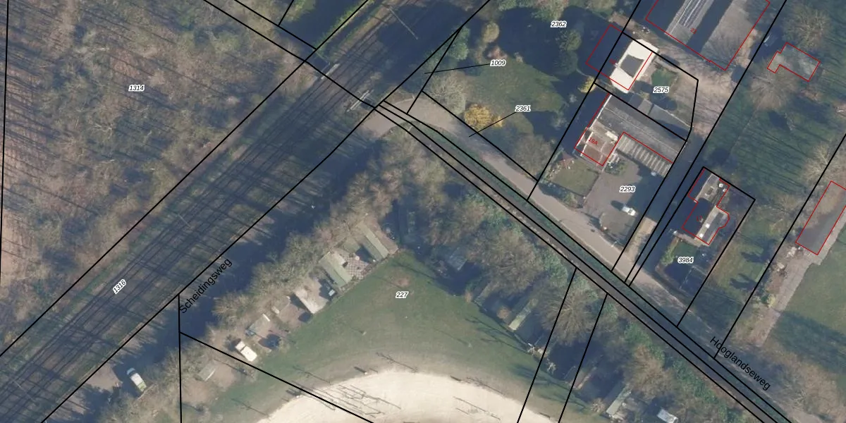 Het perceel waarop Scheidingsweg 9-08 staat heeft een oppervlakte van 2600 m². Dit is een zeer groot perceel. De perceeloppervlakte wordt geregistreerd door het Kadaster. Gedetailleerde informatie over de maten van dit perceel kunt u vinden in het rapport Kadastrale kaart met maatvoering van Scheidingsweg 9-08.