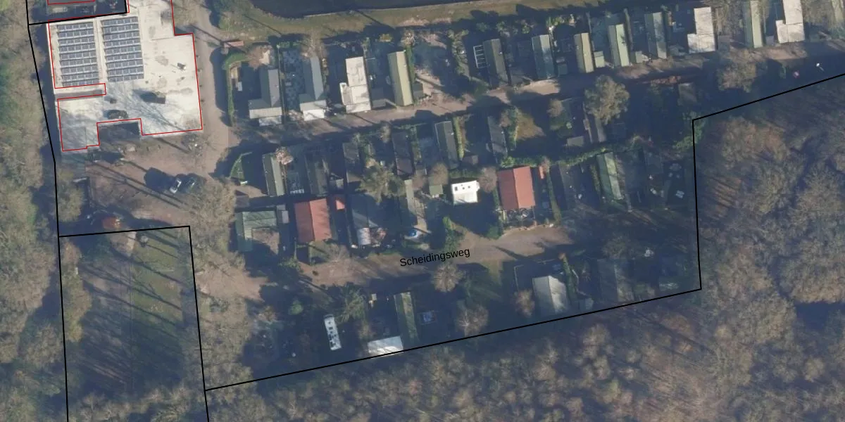 Het perceel waarop Scheidingsweg 9-097 staat heeft een oppervlakte van 3,6 ha. Dit is een zeer groot perceel. De perceeloppervlakte wordt geregistreerd door het Kadaster. Gedetailleerde informatie over de maten van dit perceel kunt u vinden in het rapport Kadastrale kaart met maatvoering van Scheidingsweg 9-097.