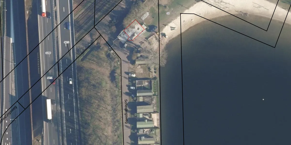 Het perceel waarop Scheidingsweg 9-0118 staat heeft een oppervlakte van 3,6 ha. Dit is een zeer groot perceel. De perceeloppervlakte wordt geregistreerd door het Kadaster. Gedetailleerde informatie over de maten van dit perceel kunt u vinden in het rapport Kadastrale kaart met maatvoering van Scheidingsweg 9-0118.