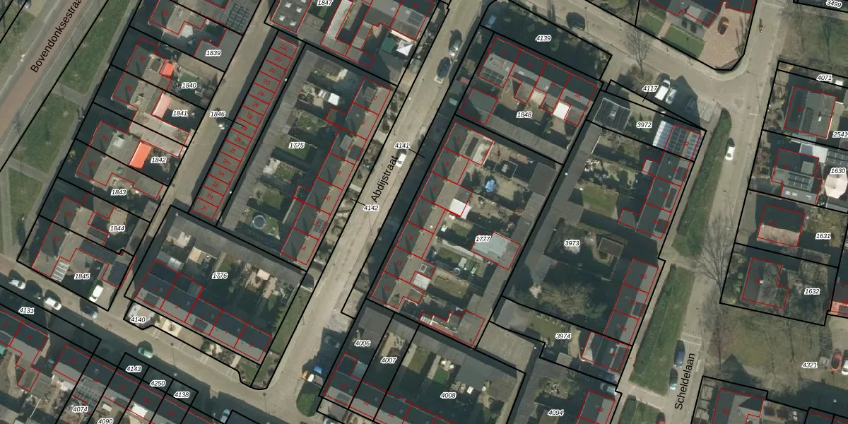 Het perceel waarop Abdijstraat 7 staat heeft een oppervlakte van 1375 m². Dit is een zeer groot perceel. De perceeloppervlakte wordt geregistreerd door het Kadaster. Gedetailleerde informatie over de maten van dit perceel kunt u vinden in het rapport Kadastrale kaart met maatvoering van Abdijstraat 7.