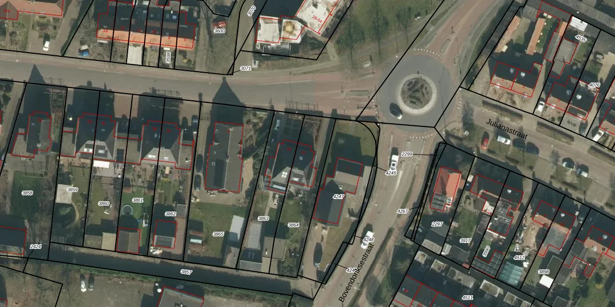 Het perceel waarop het adres ligt is HVN00-D-3864. De afkorting 'HVN00' staat voor kadastrale gemeente Hoeven. De gemiddelde perceelgrootte in Hoeven is 4385,71 m². Dit perceel is kleiner: de perceeloppervlakte bedraagt 533 m². De grootste perceeloppervlakte in de kadastrale gemeente is 33,1 ha. De kleinste oppervlakte bedraagt 0 m². Er zijn geen andere adressen aanwezig op het perceel. De laatste wijziging in het de Basisregistratie Kadaster (BRK) was op 04-09-2009.