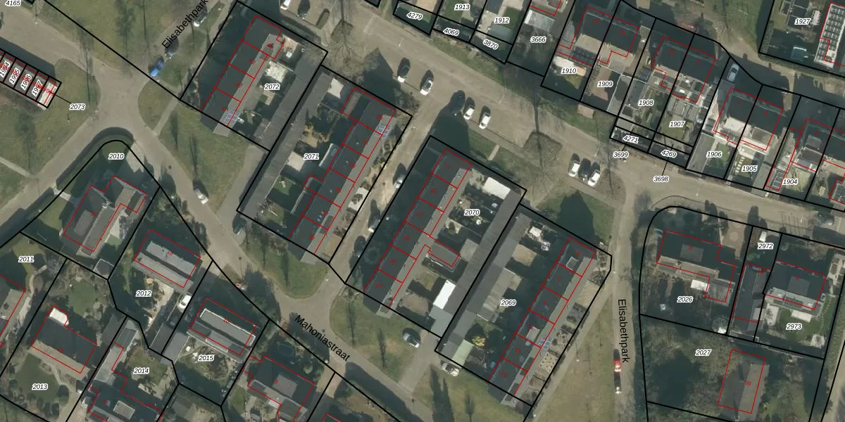 Het adres is gelegen op perceel 2070 in de sectie D en de kadastrale gemeente Hoeven. De kadastrale aanduiding is aldus HVN00-D-2070. Het perceel is 1048 m² groot. Dat is kleiner dan de gemiddelde perceeloppervlakte in Hoeven, dat op 4393,45 m² ligt. Het grootste perceel in de kadastrale gemeente is 33,1 ha. Het kleinste perceel heeft een oppervlakte van 0 m². Op het perceel zijn 6 adressen aanwezig. De laatste wijziging in het de Basisregistratie Kadaster (BRK) was op 20-08-2009.