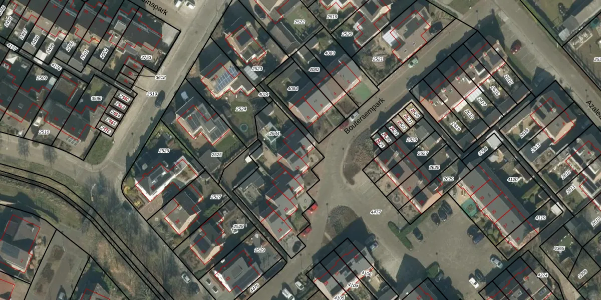 Het perceel waarop Boutersempark 10 staat heeft een oppervlakte van 815 m². Dit is een groot perceel. De perceeloppervlakte wordt geregistreerd door het Kadaster. Gedetailleerde informatie over de maten van dit perceel kunt u vinden in het rapport Kadastrale kaart met maatvoering van Boutersempark 10.