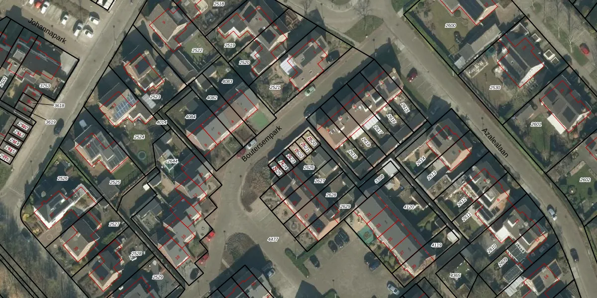 Het perceel waarop Boutersempark 15 staat heeft een oppervlakte van 18 m². Dit is een klein perceel. De perceeloppervlakte wordt geregistreerd door het Kadaster. Gedetailleerde informatie over de maten van dit perceel kunt u vinden in het rapport Kadastrale kaart met maatvoering van Boutersempark 15.