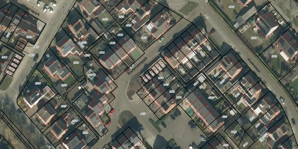Het perceel waarop Boutersempark 19 staat heeft een oppervlakte van 18 m². Dit is een klein perceel. De perceeloppervlakte wordt geregistreerd door het Kadaster. Gedetailleerde informatie over de maten van dit perceel kunt u vinden in het rapport Kadastrale kaart met maatvoering van Boutersempark 19.
