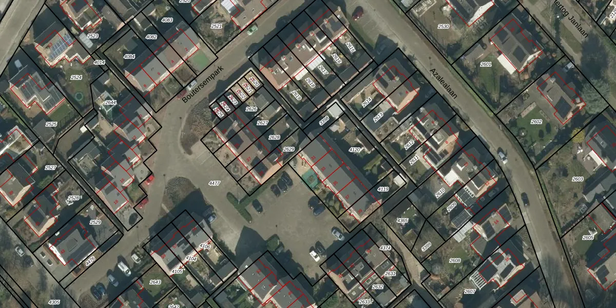 Het perceel waarop Boutersempark 31 staat heeft een oppervlakte van 596 m². Dit is een groot perceel. De perceeloppervlakte wordt geregistreerd door het Kadaster. Gedetailleerde informatie over de maten van dit perceel kunt u vinden in het rapport Kadastrale kaart met maatvoering van Boutersempark 31.