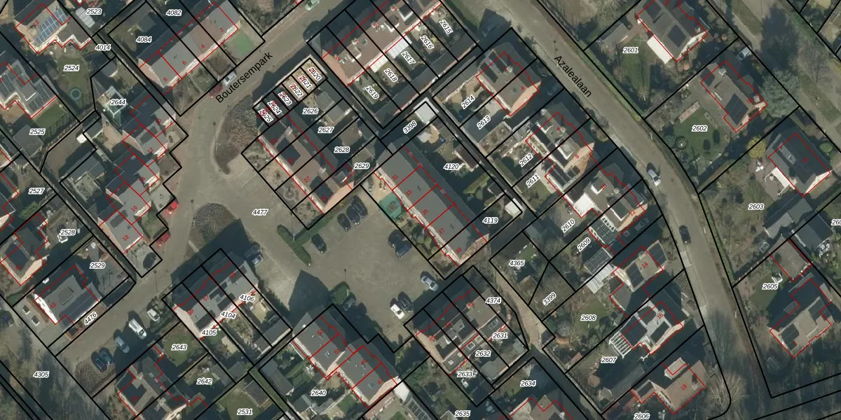 Het perceel waarop Boutersempark 35 staat heeft een oppervlakte van 596 m². Dit is een groot perceel. De perceeloppervlakte wordt geregistreerd door het Kadaster. Gedetailleerde informatie over de maten van dit perceel kunt u vinden in het rapport Kadastrale kaart met maatvoering van Boutersempark 35.