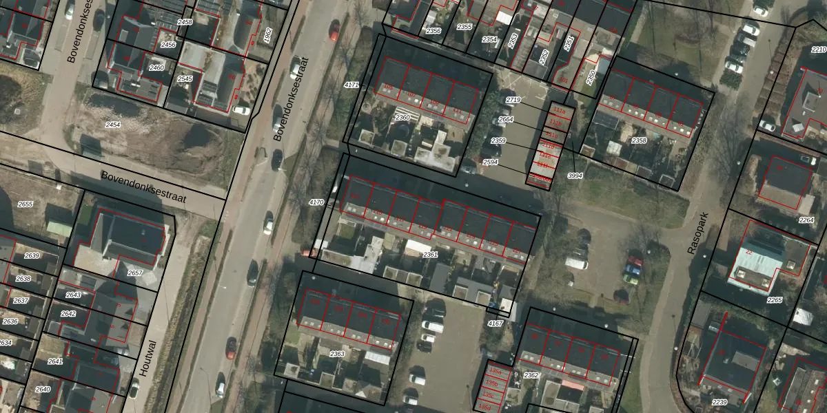 Het perceel waarop Bovendonksestraat 117 staat heeft een oppervlakte van 1277 m². Dit is een zeer groot perceel. De perceeloppervlakte wordt geregistreerd door het Kadaster. Gedetailleerde informatie over de maten van dit perceel kunt u vinden in het rapport Kadastrale kaart met maatvoering van Bovendonksestraat 117.