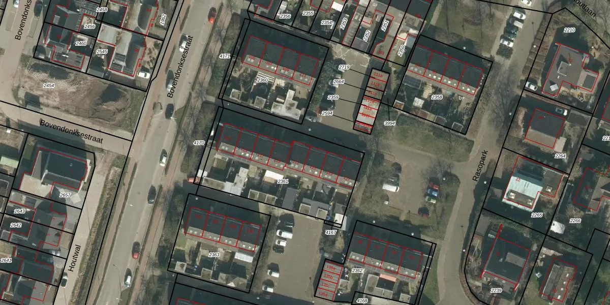 Bovendonksestraat 121 is gelegen op kadastraal perceel HVN00D2361. Deze kadastrale aanduiding is uniek en wordt gebruikt door het Kadaster om eigendomsrechten en andere zakelijke rechten vast te leggen. Het perceel maakt onderdeel uit van de kadastrale gemeente Hoeven.