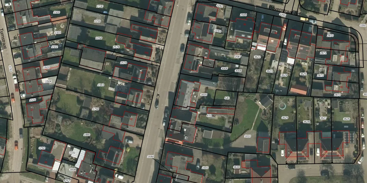 Het perceel waarop Bovenstraat 21 staat heeft een oppervlakte van 465 m². Dit is een groot perceel. De perceeloppervlakte wordt geregistreerd door het Kadaster. Gedetailleerde informatie over de maten van dit perceel kunt u vinden in het rapport Kadastrale kaart met maatvoering van Bovenstraat 21.