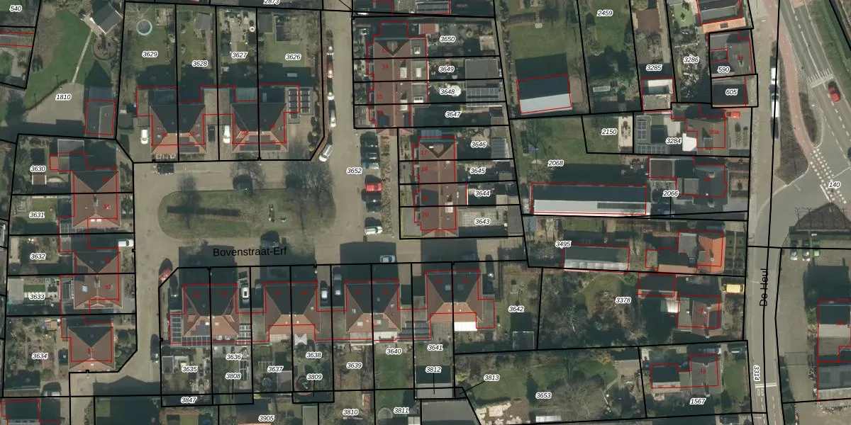 Bovenstraat-Erf 20 is gelegen op kadastraal perceel HVN00D3643. Deze kadastrale aanduiding is uniek en wordt gebruikt door het Kadaster om eigendomsrechten en andere zakelijke rechten vast te leggen. Het perceel maakt onderdeel uit van de kadastrale gemeente Hoeven.