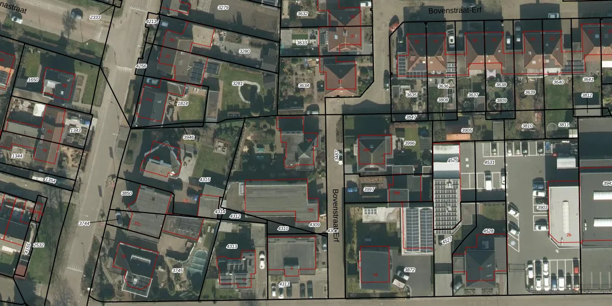 Bovenstraat-Erf 30 is gelegen op kadastraal perceel HVN00D4309. Deze kadastrale aanduiding is uniek en wordt gebruikt door het Kadaster om eigendomsrechten en andere zakelijke rechten vast te leggen. Het perceel maakt onderdeel uit van de kadastrale gemeente Hoeven.