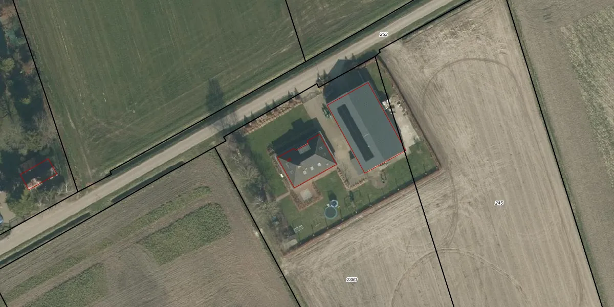 Het perceel waarop het adres ligt is HVN00-H-2380. De afkorting 'HVN00' staat voor kadastrale gemeente Hoeven. Het perceel is met 5945 m² relatief groot. Het gemiddelde ligt in de kadastrale gemeente Hoeven op 4393,45 m². Het kleinste perceel in de kadastrale gemeente is 0 m² groot. De grootste perceeloppervlakte is 33,1 ha. Dit is het enige adres dat aanwezig is op het perceel. De huidige grenzen van het perceel zijn digitaal in de Basisregistratie Kadaster (BRK) geregistreerd op 29-11-2017.