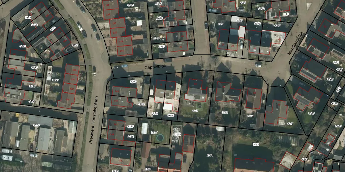 Cappelblok 21 is gelegen op kadastraal perceel HVN00D3048. Deze kadastrale aanduiding is uniek en wordt gebruikt door het Kadaster om eigendomsrechten en andere zakelijke rechten vast te leggen. Het perceel maakt onderdeel uit van de kadastrale gemeente Hoeven.