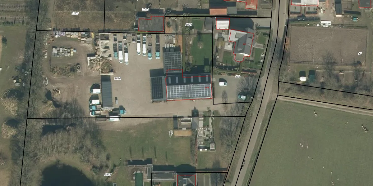Het perceel waarop De Heul 14-a staat heeft een oppervlakte van 4565 m². Dit is een zeer groot perceel. De perceeloppervlakte wordt geregistreerd door het Kadaster. Gedetailleerde informatie over de maten van dit perceel kunt u vinden in het rapport Kadastrale kaart met maatvoering van De Heul 14-a.
