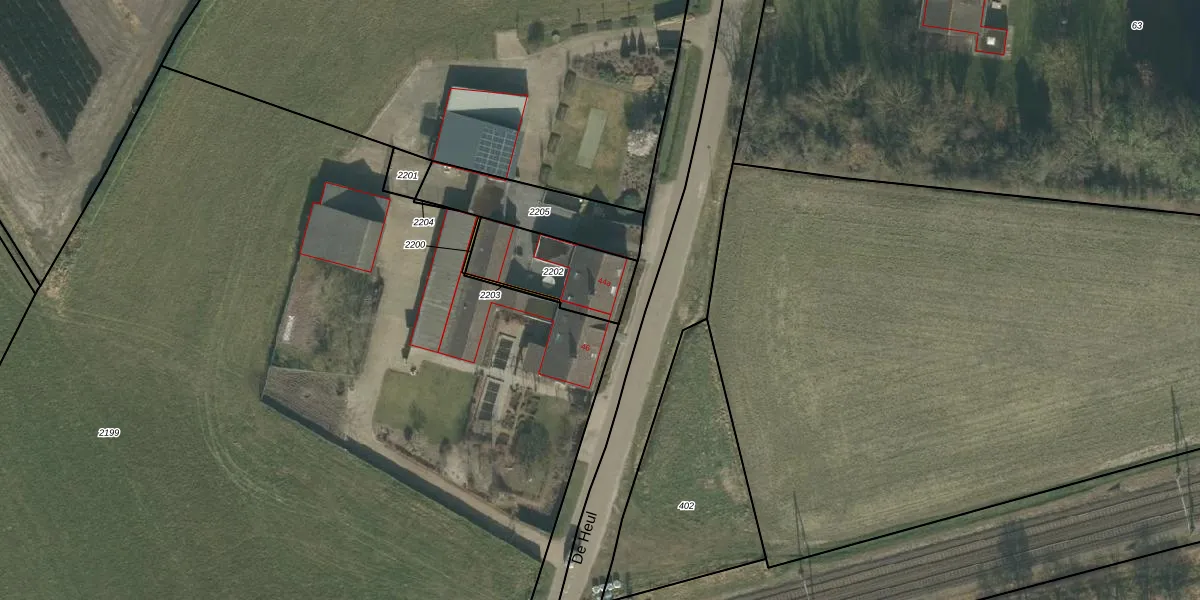 De Heul 44-a is gelegen op kadastraal perceel HVN00H2202. Deze kadastrale aanduiding is uniek en wordt gebruikt door het Kadaster om eigendomsrechten en andere zakelijke rechten vast te leggen. Het perceel maakt onderdeel uit van de kadastrale gemeente Hoeven.