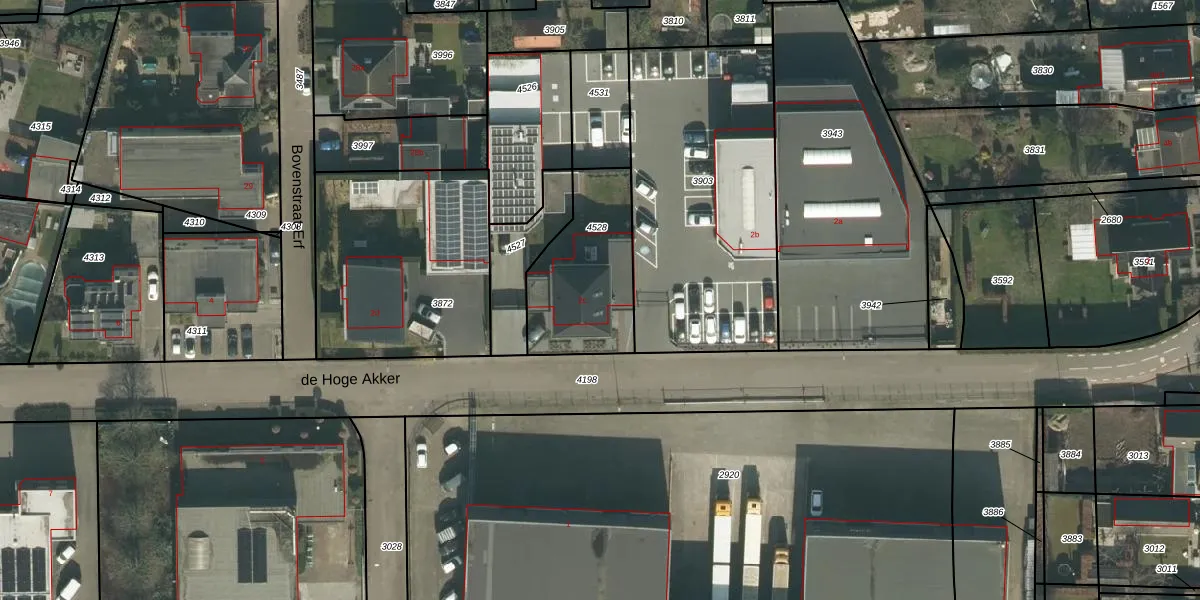 Het adres ligt op het perceel HVN00-D-4528, dat zich in de kadastrale gemeente Hoeven bevindt. De gemiddelde perceelgrootte in Hoeven is 4382,49 m². Dit perceel is kleiner: de perceeloppervlakte bedraagt 449 m². Het grootste perceel in de kadastrale gemeente is 33,1 ha. Het kleinste perceel heeft een oppervlakte van 0 m². Er zijn geen andere adressen aanwezig op het perceel. De huidige grenzen van het perceel zijn digitaal in de Basisregistratie Kadaster (BRK) geregistreerd op 25-01-2023.