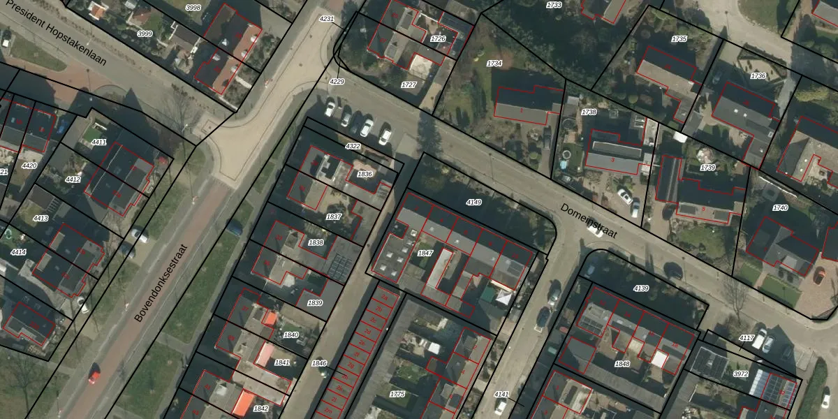 Domeinstraat 2 is gelegen op kadastraal perceel HVN00D1847. Deze kadastrale aanduiding is uniek en wordt gebruikt door het Kadaster om eigendomsrechten en andere zakelijke rechten vast te leggen. Het perceel maakt onderdeel uit van de kadastrale gemeente Hoeven.