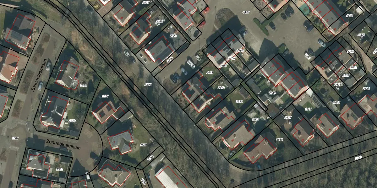 Het perceel waarop het adres ligt is HVN00-D-2643. De afkorting 'HVN00' staat voor kadastrale gemeente Hoeven. De gemiddelde perceelgrootte in Hoeven is 4385,71 m². Dit perceel is kleiner: de perceeloppervlakte bedraagt 279 m². Het kleinste perceel in de kadastrale gemeente is 0 m² groot. De grootste perceeloppervlakte is 33,1 ha. Dit is het enige adres dat aanwezig is op het perceel. De laatste wijziging in het de Basisregistratie Kadaster (BRK) was op 08-09-2009.