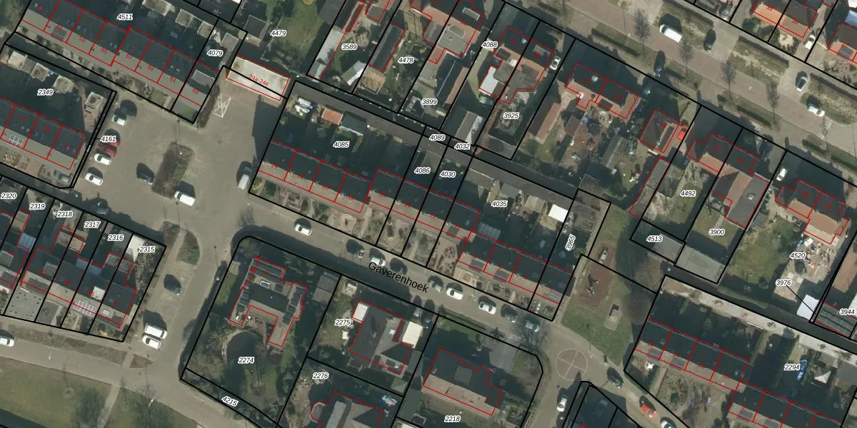 Gaverenhoek 12 is gelegen op kadastraal perceel HVN00D4030. Deze kadastrale aanduiding is uniek en wordt gebruikt door het Kadaster om eigendomsrechten en andere zakelijke rechten vast te leggen. Het perceel maakt onderdeel uit van de kadastrale gemeente Hoeven.