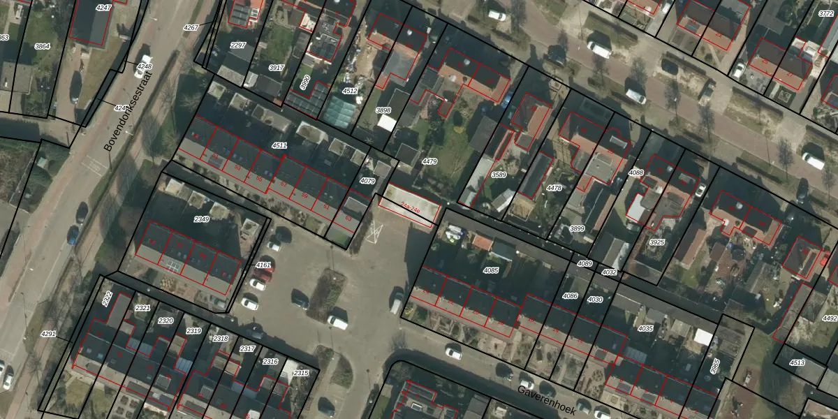 Gaverenhoek 24-b is gelegen op kadastraal perceel HVN00D4479. Deze kadastrale aanduiding is uniek en wordt gebruikt door het Kadaster om eigendomsrechten en andere zakelijke rechten vast te leggen. Het perceel maakt onderdeel uit van de kadastrale gemeente Hoeven.