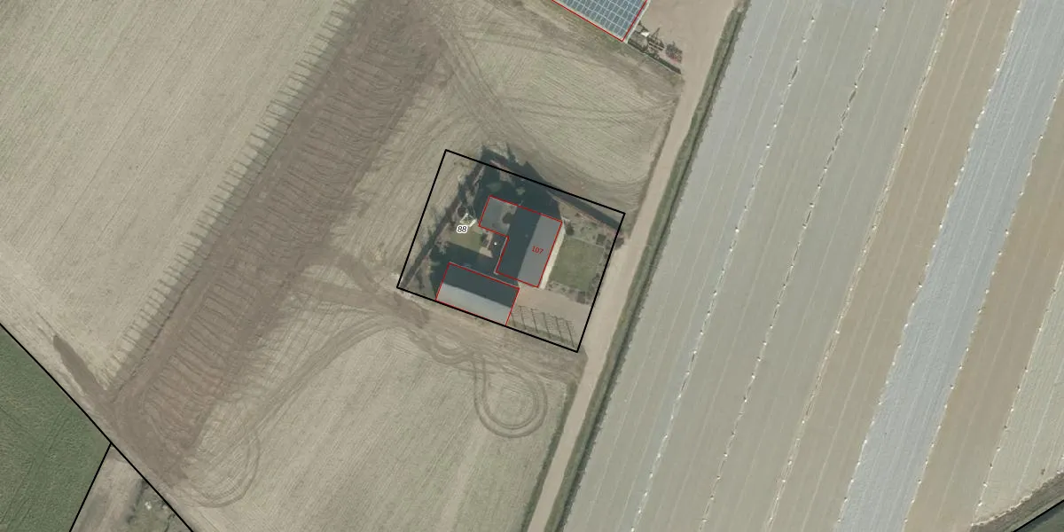 Het perceel waarop Gors 107 staat heeft een oppervlakte van 1000 m². Dit is een zeer groot perceel. De perceeloppervlakte wordt geregistreerd door het Kadaster. Gedetailleerde informatie over de maten van dit perceel kunt u vinden in het rapport Kadastrale kaart met maatvoering van Gors 107.