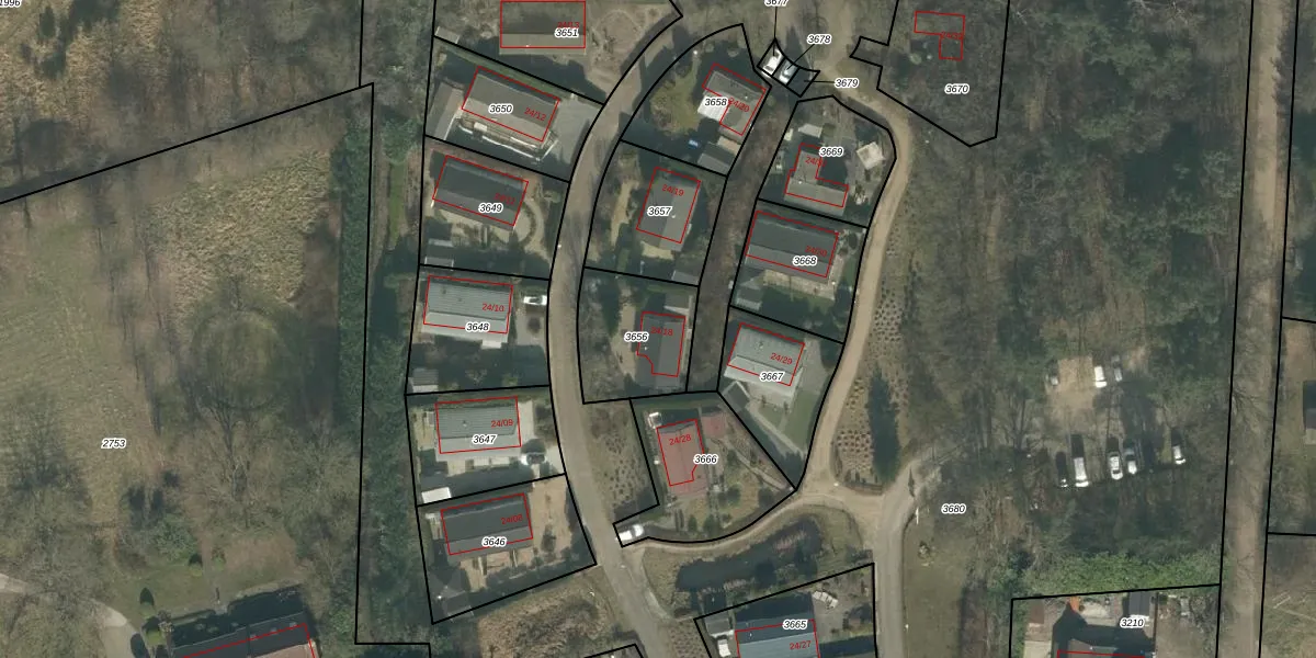 Het adres is gelegen op perceel 3656 in de sectie G en de kadastrale gemeente Hoeven. De kadastrale aanduiding is aldus HVN00-G-3656. Het perceel is kleiner dan gemiddeld in Hoeven. Het perceel is 318 m² groot, terwijl het gemiddelde ligt op 4392,8 m². De grootste perceeloppervlakte in de kadastrale gemeente is 33,1 ha. De kleinste oppervlakte bedraagt 0 m². Op het perceel bevinden zich geen andere adressen. In de Basisregistratie Kadaster (BRK) werden de grenzen van het perceel geregistreerd op 08-09-2009.