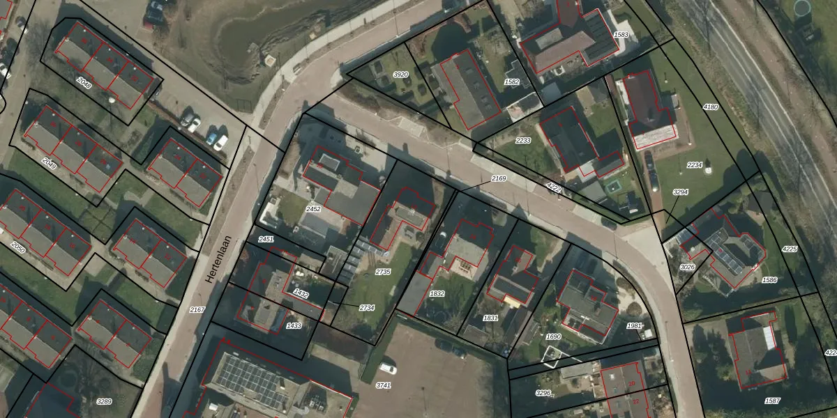 Het perceel waarop Hertenlaan 12 staat heeft een oppervlakte van 640 m². Dit is een groot perceel. De perceeloppervlakte wordt geregistreerd door het Kadaster. Gedetailleerde informatie over de maten van dit perceel kunt u vinden in het rapport Kadastrale kaart met maatvoering van Hertenlaan 12.
