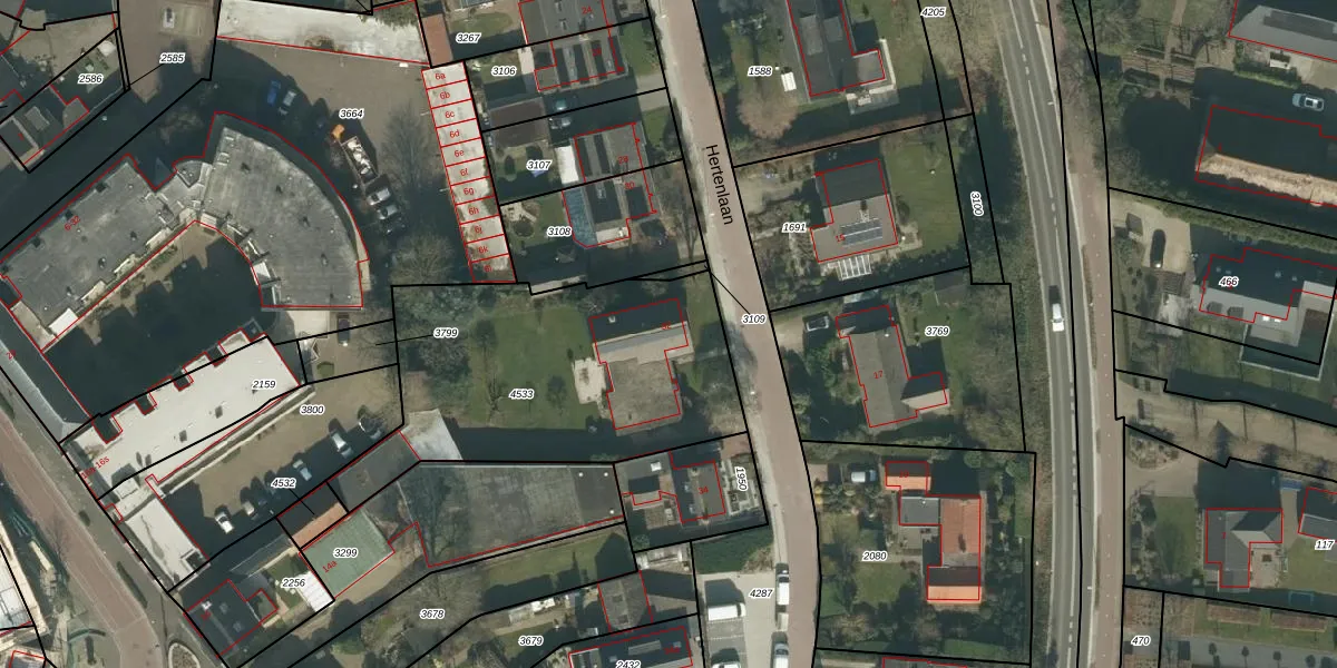 Hertenlaan 32 is gelegen op kadastraal perceel HVN00D4533. Deze kadastrale aanduiding is uniek en wordt gebruikt door het Kadaster om eigendomsrechten en andere zakelijke rechten vast te leggen. Het perceel maakt onderdeel uit van de kadastrale gemeente Hoeven.