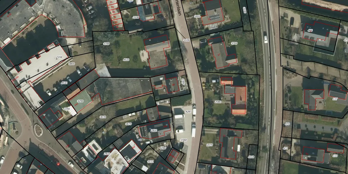 Gebruik de zoekbalk of klik op een perceel voor informatie over de adressen binnen dit perceel.