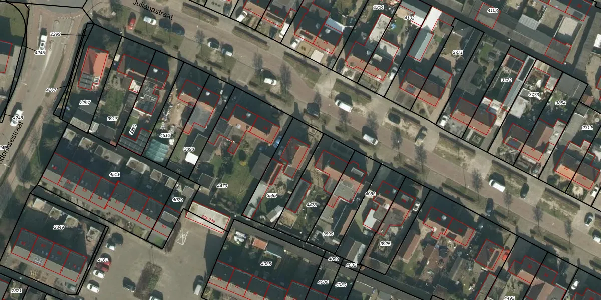 Julianastraat 16 is gelegen op kadastraal perceel HVN00D3589. Deze kadastrale aanduiding is uniek en wordt gebruikt door het Kadaster om eigendomsrechten en andere zakelijke rechten vast te leggen. Het perceel maakt onderdeel uit van de kadastrale gemeente Hoeven.