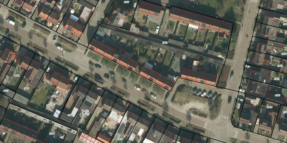 Julianastraat 53 is gelegen op kadastraal perceel HVN00D1852. Deze kadastrale aanduiding is uniek en wordt gebruikt door het Kadaster om eigendomsrechten en andere zakelijke rechten vast te leggen. Het perceel maakt onderdeel uit van de kadastrale gemeente Hoeven.