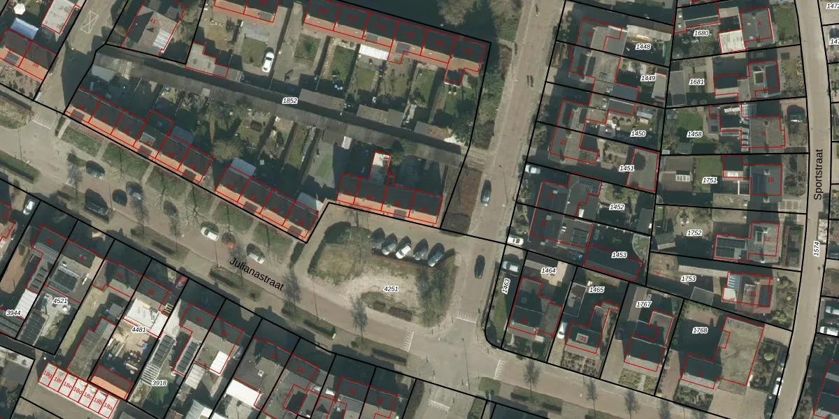 Het perceel waarop Julianastraat 67 staat heeft een oppervlakte van 4000 m². Dit is een zeer groot perceel. De perceeloppervlakte wordt geregistreerd door het Kadaster. Gedetailleerde informatie over de maten van dit perceel kunt u vinden in het rapport Kadastrale kaart met maatvoering van Julianastraat 67.