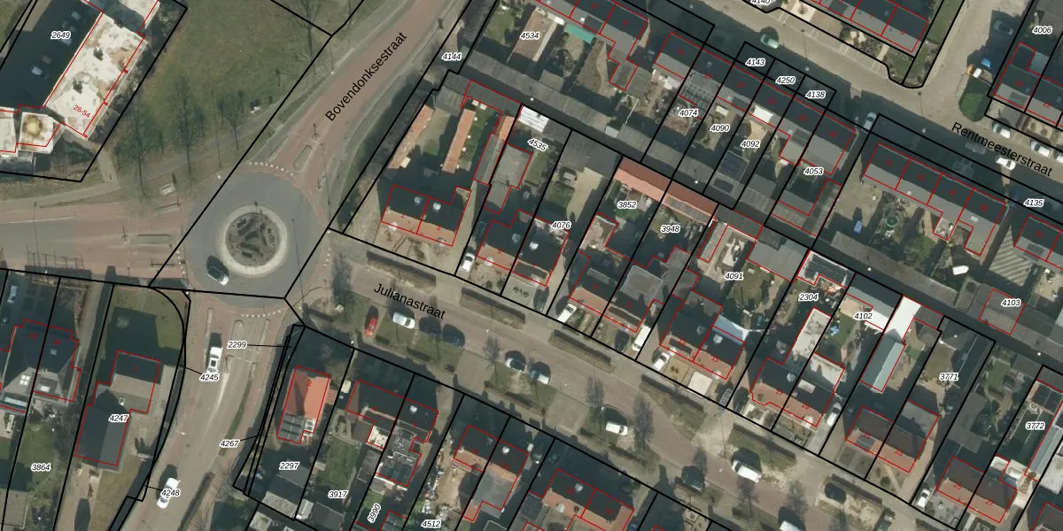 Julianastraat 7 is gelegen op kadastraal perceel HVN00D4076. Deze kadastrale aanduiding is uniek en wordt gebruikt door het Kadaster om eigendomsrechten en andere zakelijke rechten vast te leggen. Het perceel maakt onderdeel uit van de kadastrale gemeente Hoeven.