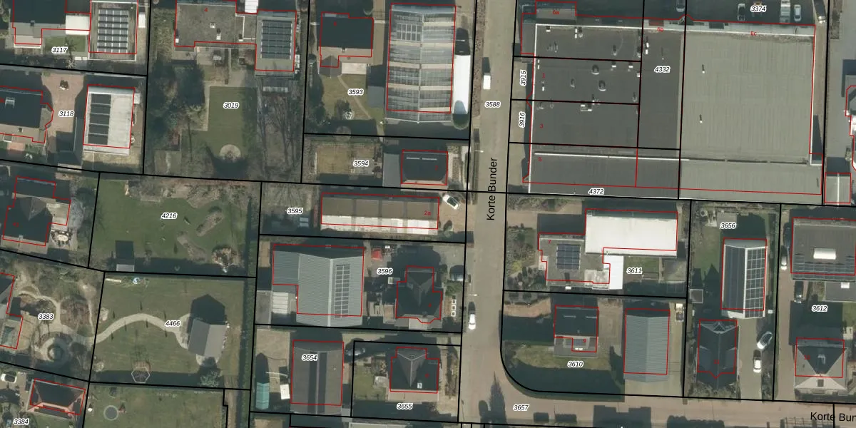 Het perceel waarop Korte Bunder 2-a staat heeft een oppervlakte van 591 m². Dit is een groot perceel. De perceeloppervlakte wordt geregistreerd door het Kadaster. Gedetailleerde informatie over de maten van dit perceel kunt u vinden in het rapport Kadastrale kaart met maatvoering van Korte Bunder 2-a.