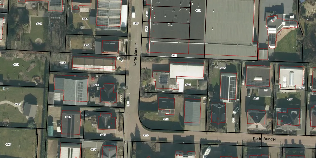 Het perceel waarop Korte Bunder 7 staat heeft een oppervlakte van 985 m². Dit is een groot perceel. De perceeloppervlakte wordt geregistreerd door het Kadaster. Gedetailleerde informatie over de maten van dit perceel kunt u vinden in het rapport Kadastrale kaart met maatvoering van Korte Bunder 7.