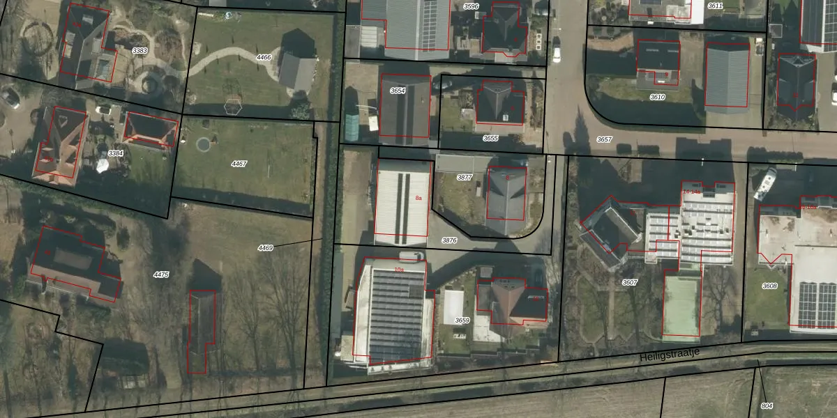 Het adres ligt op het perceel HVN00-D-3876, dat zich in de kadastrale gemeente Hoeven bevindt. Het perceel is kleiner dan gemiddeld in Hoeven. Het perceel is 700 m² groot, terwijl het gemiddelde ligt op 4393,45 m². Het grootste perceel in de kadastrale gemeente is 33,1 ha. Het kleinste perceel heeft een oppervlakte van 0 m². Op het perceel bevinden zich geen andere adressen. De laatste wijziging in het de Basisregistratie Kadaster (BRK) was op 21-09-2009.