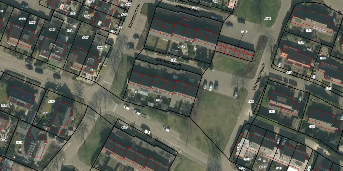 Meidoornlaan 73 is gelegen op kadastraal perceel HVN00D1901. Deze kadastrale aanduiding is uniek en wordt gebruikt door het Kadaster om eigendomsrechten en andere zakelijke rechten vast te leggen. Het perceel maakt onderdeel uit van de kadastrale gemeente Hoeven.