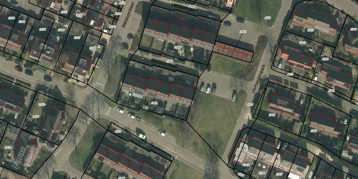 Meidoornlaan 75 is gelegen op kadastraal perceel HVN00D1901. Deze kadastrale aanduiding is uniek en wordt gebruikt door het Kadaster om eigendomsrechten en andere zakelijke rechten vast te leggen. Het perceel maakt onderdeel uit van de kadastrale gemeente Hoeven.