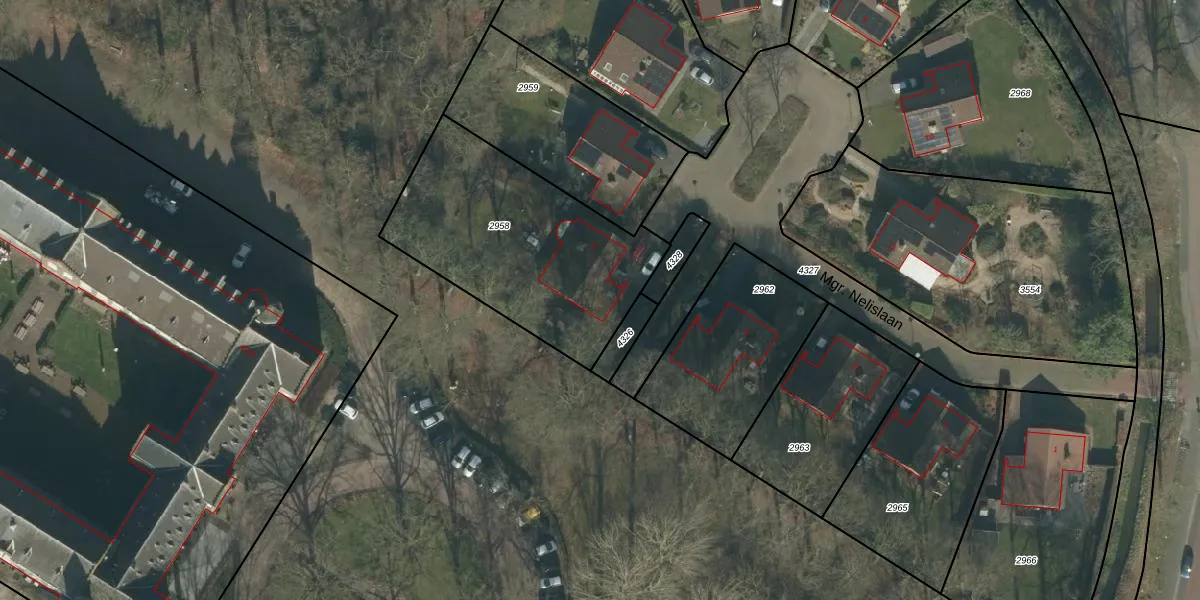 Mgr. Nelislaan 5 is gelegen op kadastraal perceel HVN00D2958. Deze kadastrale aanduiding is uniek en wordt gebruikt door het Kadaster om eigendomsrechten en andere zakelijke rechten vast te leggen. Het perceel maakt onderdeel uit van de kadastrale gemeente Hoeven.