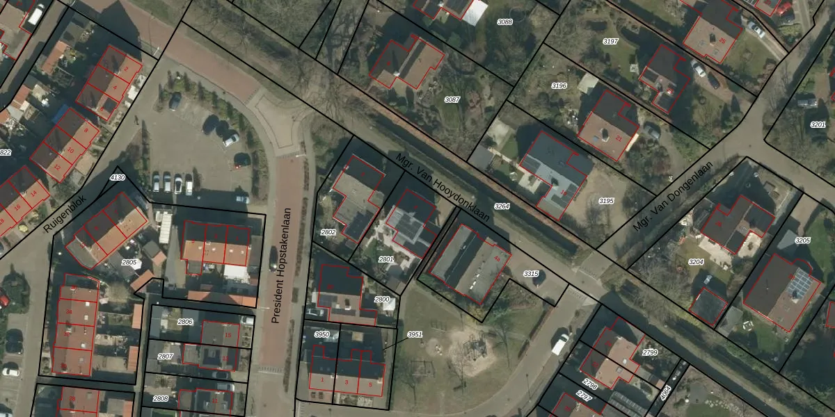 Mgr. Van Hooydonklaan 4 is gelegen op kadastraal perceel HVN00D2801. Deze kadastrale aanduiding is uniek en wordt gebruikt door het Kadaster om eigendomsrechten en andere zakelijke rechten vast te leggen. Het perceel maakt onderdeel uit van de kadastrale gemeente Hoeven.