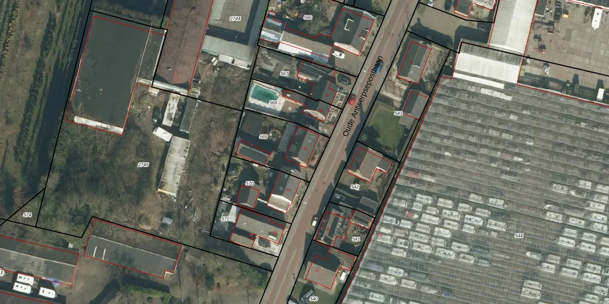 Oude Antwerpsepostbaan 12 is gelegen op kadastraal perceel HVN00H569. Deze kadastrale aanduiding is uniek en wordt gebruikt door het Kadaster om eigendomsrechten en andere zakelijke rechten vast te leggen. Het perceel maakt onderdeel uit van de kadastrale gemeente Hoeven.