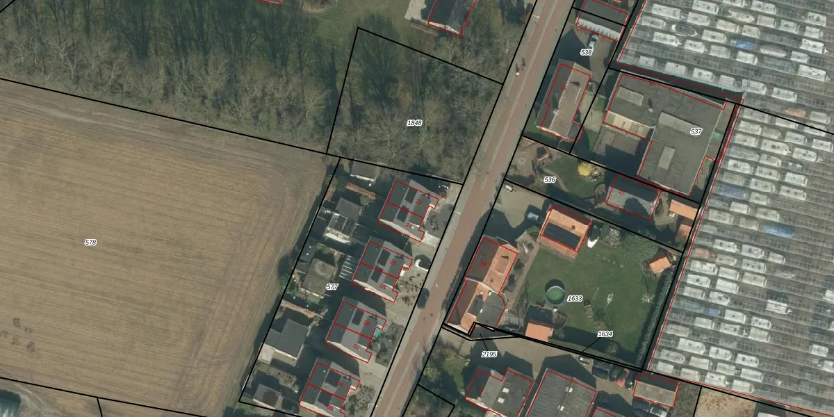 Het adres is gelegen op perceel 577 in de sectie H en de kadastrale gemeente Hoeven. De kadastrale aanduiding is aldus HVN00-H-577. Het perceel is 1915 m² groot. Dat is kleiner dan de gemiddelde perceeloppervlakte in Hoeven, dat op 4393,45 m² ligt. De grootste perceeloppervlakte in de kadastrale gemeente is 33,1 ha. De kleinste oppervlakte bedraagt 0 m². Op het perceel zijn 8 adressen aanwezig. De laatste wijziging in het de Basisregistratie Kadaster (BRK) was op 04-09-2009.