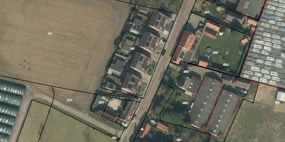 Het perceel waarop het adres ligt is HVN00-H-577. De afkorting 'HVN00' staat voor kadastrale gemeente Hoeven. De gemiddelde perceelgrootte in Hoeven is 4393,45 m². Dit perceel is kleiner: de perceeloppervlakte bedraagt 1915 m². Het grootste perceel in de kadastrale gemeente is 33,1 ha. Het kleinste perceel heeft een oppervlakte van 0 m². Op het perceel zijn 8 adressen aanwezig. In de Basisregistratie Kadaster (BRK) werden de grenzen van het perceel geregistreerd op 04-09-2009.